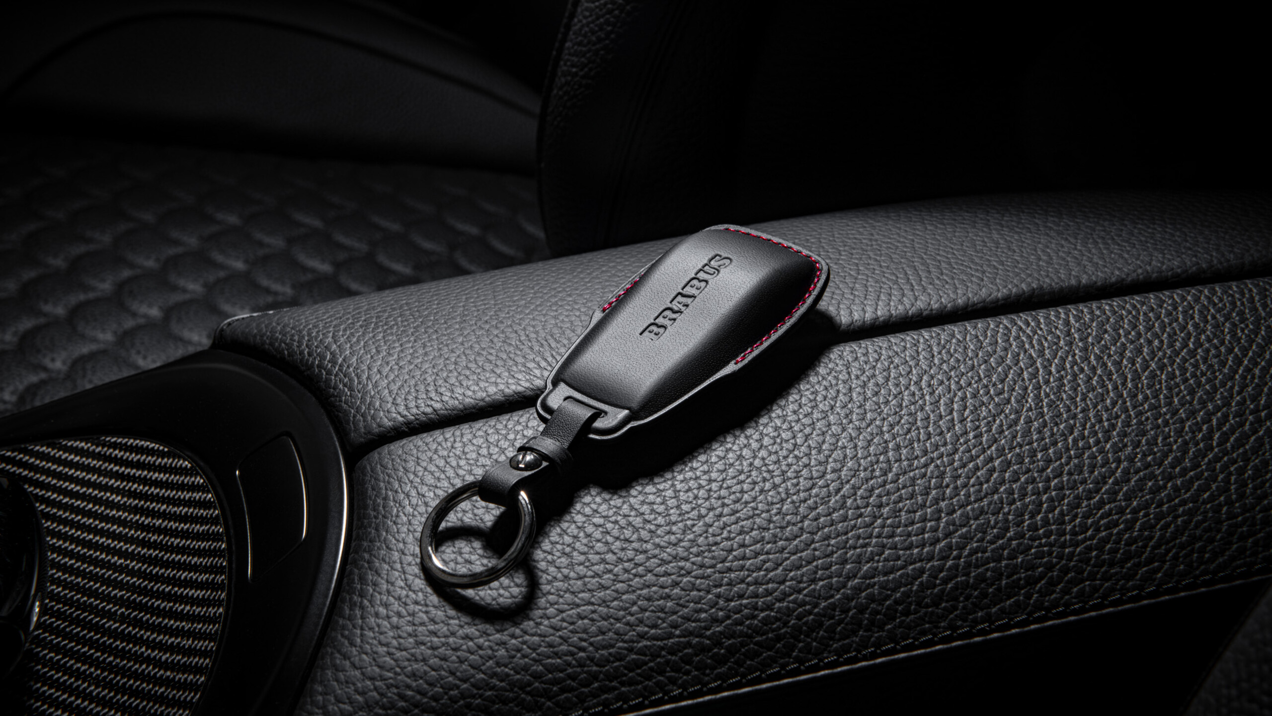 Protect your key with this custom BRABUS key cover. Made from high-grade leather and accentuated by red stitching, this must-have accessory features unmistakable “B” embossing on the front side and BRABUS lettering on the back.
