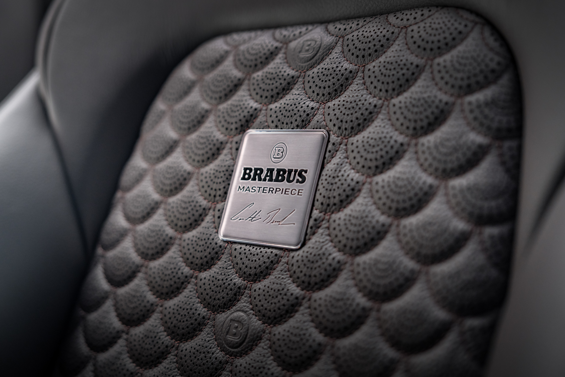 The BRABUS 900 naturally also features an exclusive Masterpiece interior, carefully tailored from exceptionally soft yet highly durable leather by the experts of the BRABUS upholstery workshop. The cabin is finished entirely in “Nocturne Brown”. The seat surfaces feature precise quilting and perforation in the signature “Shell” pattern, accompanied by embossed BRABUS “Double-B” logos.