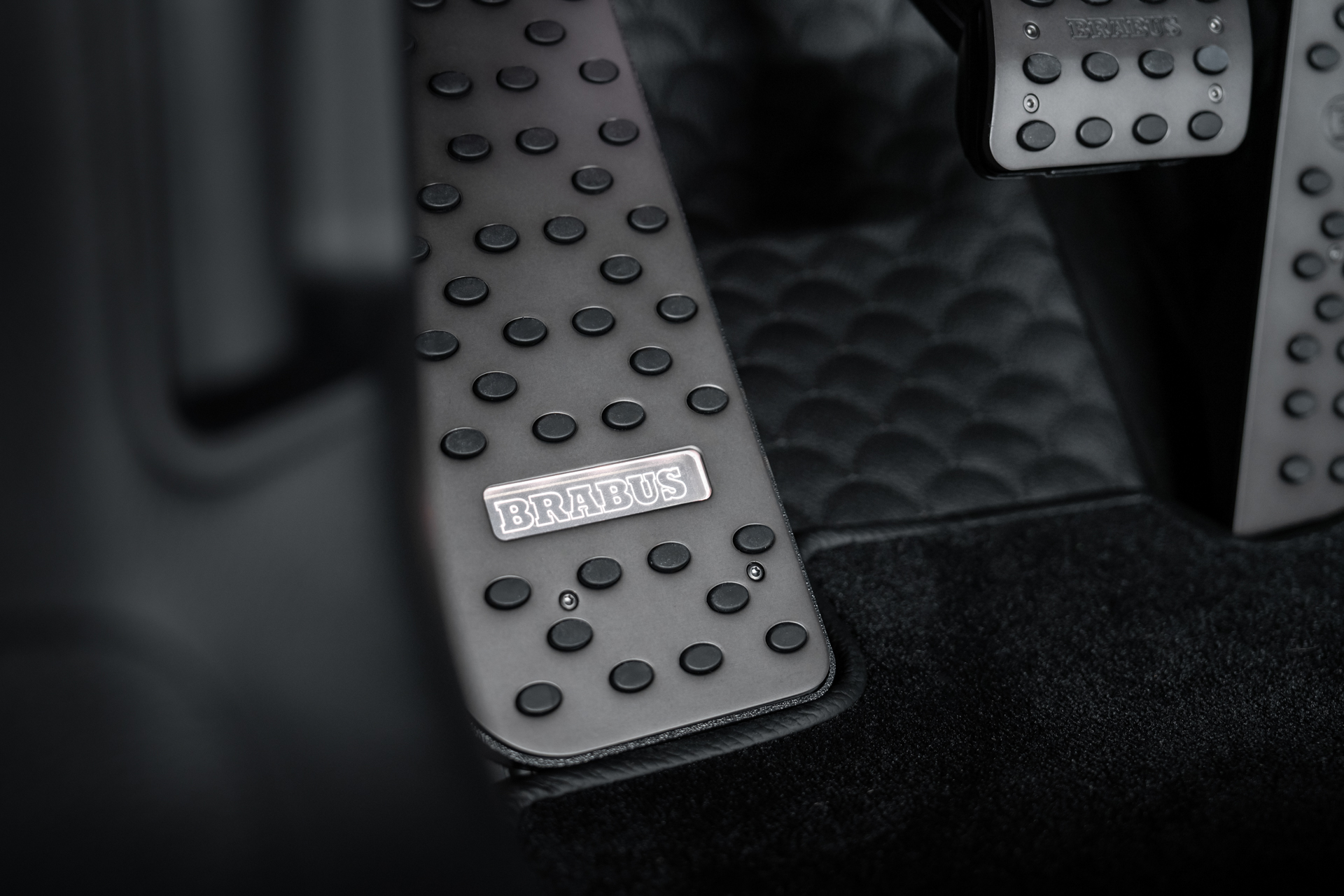 The door panels and rear side trims are refined with embossed “Shell” elements, adding a unique sense of depth and texture that elegantly integrates into the design. The dashboard houses a dedicated timepiece featuring a distinctive BRABUS dial, contributing an additional layer of detail to the cabin’s elegant, refined aesthetic.