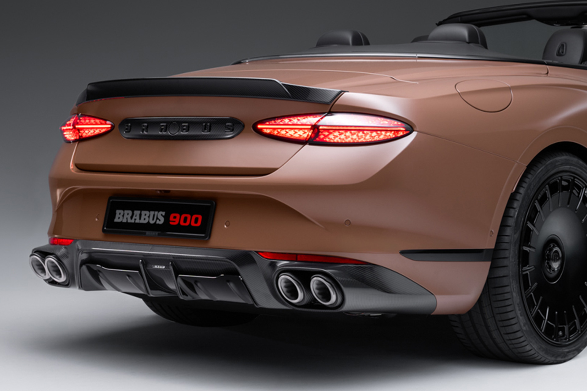 The exposed-structure carbon fiber exterior concept and the aerodynamic concept sharpen the BRABUS 900’s silhouette while perfectly showcasing the four carbon-sheathed titanium tailpipes of the valve-controlled BRABUS high-performance sports exhaust system. The exclusive “Pale Brown” paint finish completes the exterior design of the Masterpiece supercar shown here with an undeniable 1-Second-Wow effect.