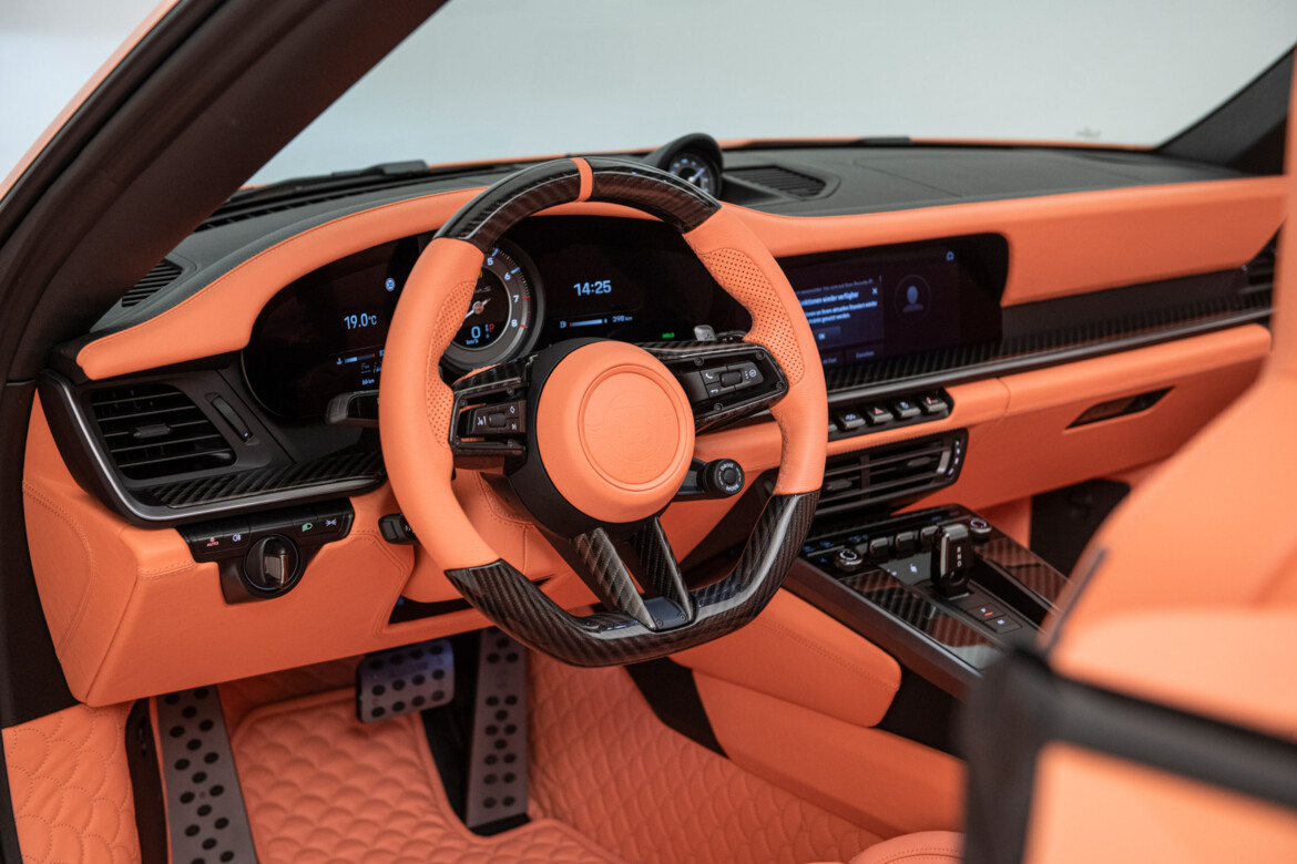 Meticulously engineered to challenge our typical design language, the BRABUS 900 "PEETCH" is a vibrant reimagining of modern high performance. An unapologetic fusion of power, precision and unmistakable individuality—finished entirely in the BRABUS “Peetch” signature style. Based on the Porsche 911 Turbo S Cabriolet, every detail captures the attention, offering both a thrilling drive and an unparalleled luxury experience. This highlight of the BRABUS Collection 2025 combines cutting-edge engineering with a carbon fiber aerodynamic exterior concept to create an all-out 1-Second-Wow effect the moment you set eyes on it.