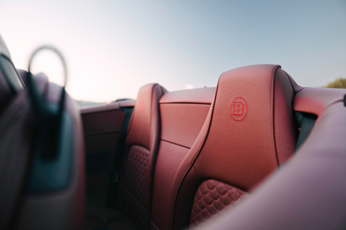 The BRABUS ROCKET GTC DEEP RED is equipped with BRABUS Monoblock P “PLATINUM EDITION” five-spoke wheels in a center-lock design. Specially developed for the extra-wide, Kevlar-lined wheel arches, their production employs the latest forging and machining technology to achieve the perfect balance of light weight and exceptional strength. Red exposed-structure carbon aero-blades channel the heat generated during braking out of the wheel wells while driving.