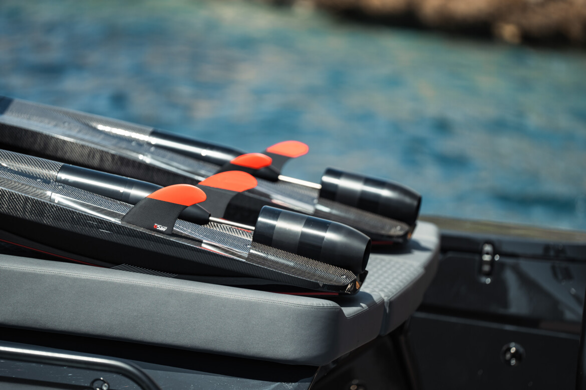 Second-generation Awake carbon fiber fins provide razor-sharp drive at high speeds while offering added stability for smooth, controlled maneuvers. These are complemented by a custom-made, BRABUS-style soft deck pad. The reduced W-shape hull design ensures the perfect balance of stability and dynamic handling—whether carving at high speed or gliding effortlessly along the shore. Developed to bridge the gap between adrenaline-fueled rides and easy cruising, the Shadow Explore evolves with you, optimized for a confident first ride and maximum agility once you master the board.