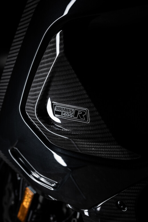 The BRABUS 1400 R SIGNATURE EDITION was designed to captivate. Boasting a staggering performance output of 140 kW / 190 hp and 145 Nm (107 lb-ft) of torque as well as exclusive WIDESTAR bodywork, its high-impact look is undeniable—enhanced by precision-engineered exposed carbon fiber fairing components and the BRABUS “Midnight Veil” body color.