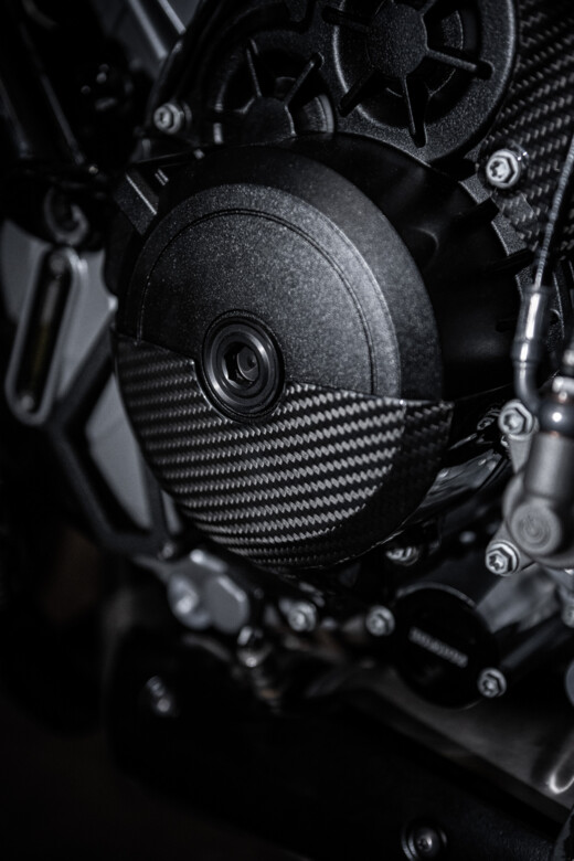 The BRABUS 1400 R SIGNATURE EDITION is equipped with a 1,350 cm3 LC8 V-Twin engine. The two-cylinder powerhouse produces 140 kW / 190 hp and 145 Nm (107 lb-ft) of maximum torque. The internal ram air intake system optimizes power delivery, while five dedicated ride modes allow riders to tailor their experience to any situation. Operating in perfect interplay with the dual-pipe exhaust integrated under the carbon fiber undertray, it generates a thrilling soundscape that perfectly matches the bike's emphatically aggressive look and highlight the 17-inch BRABUS Monoblock II EVO “PLATINUM EDITION” high-end wheels.