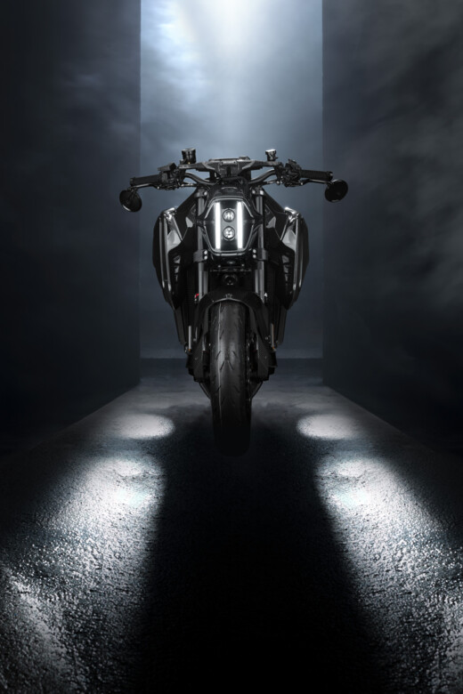 At the front, the BRABUS front fender and LED headlight unit with a unique daytime running light signature inspired by the BRABUS signature stripes take center stage. Framed by a custom-made carbon mask, their distinctive geometry defines the bike’s dynamic face.