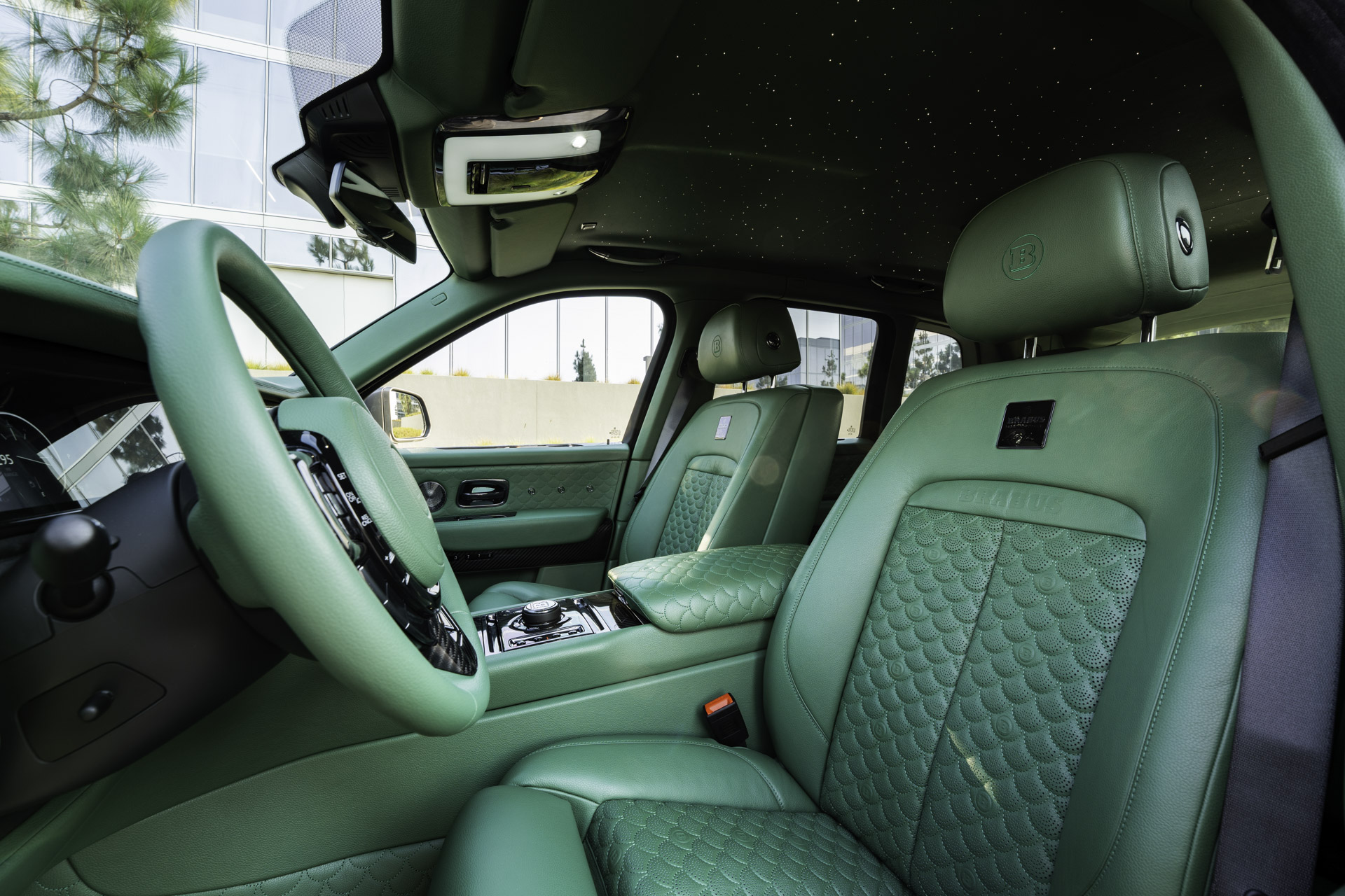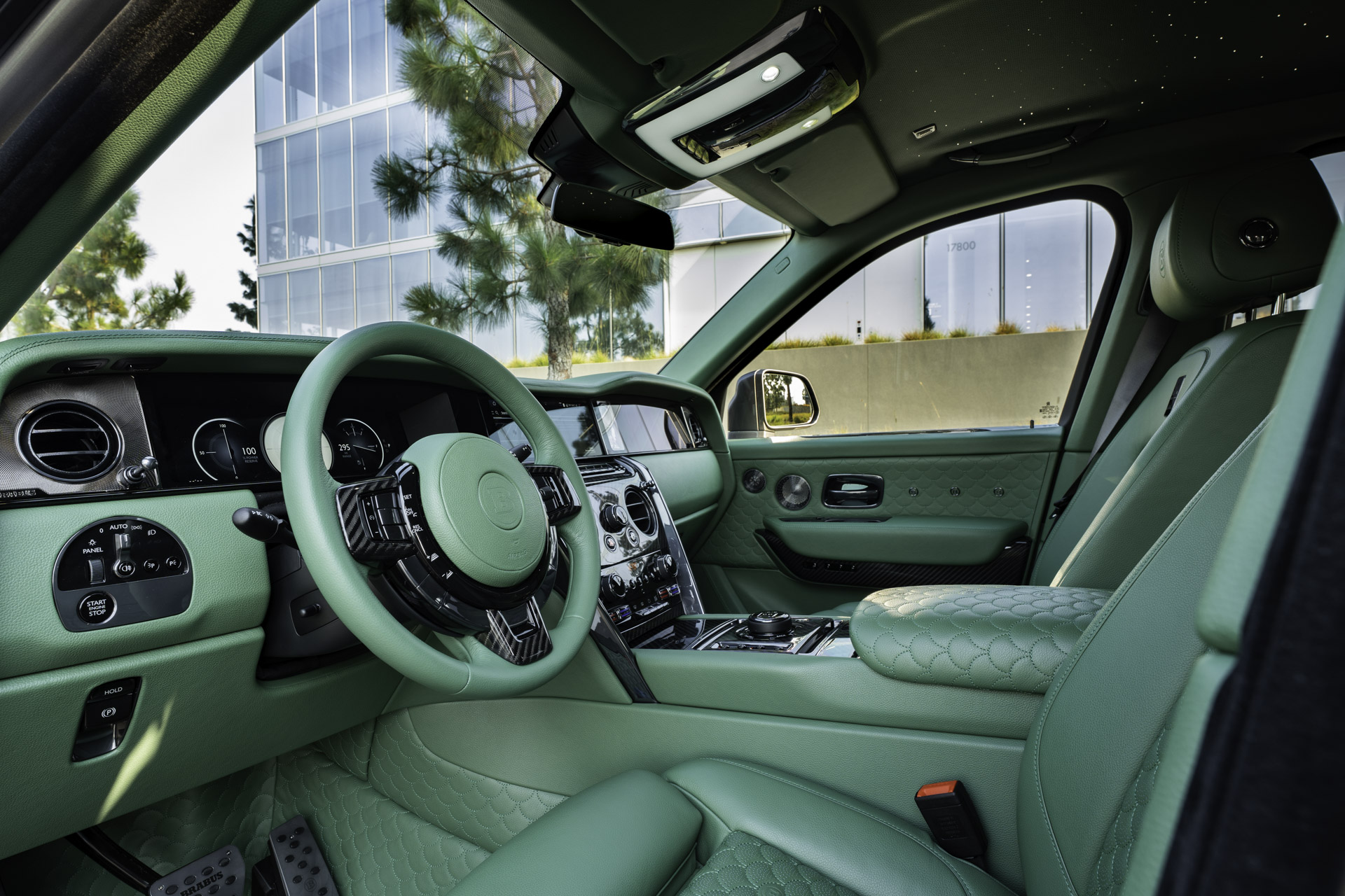The bespoke BRABUS Masterpiece interior of the BRABUS 700 is handcrafted in the BRABUS upholstery shop from the finest leather in the signature color “Verdant Shadow,” creating an atmosphere of pure exclusivity and comfort throughout the cockpit and the lavish rear cabin.