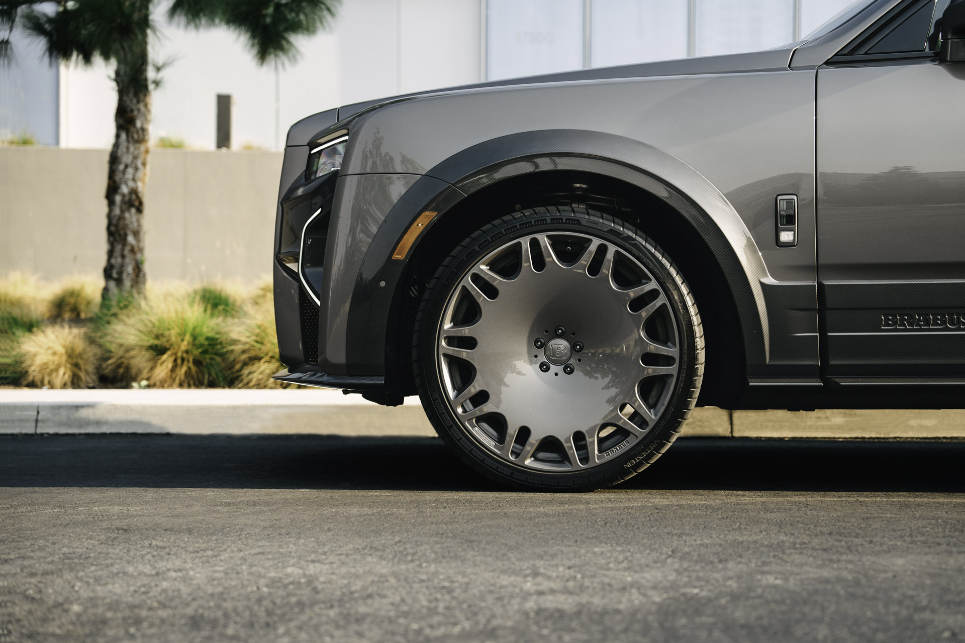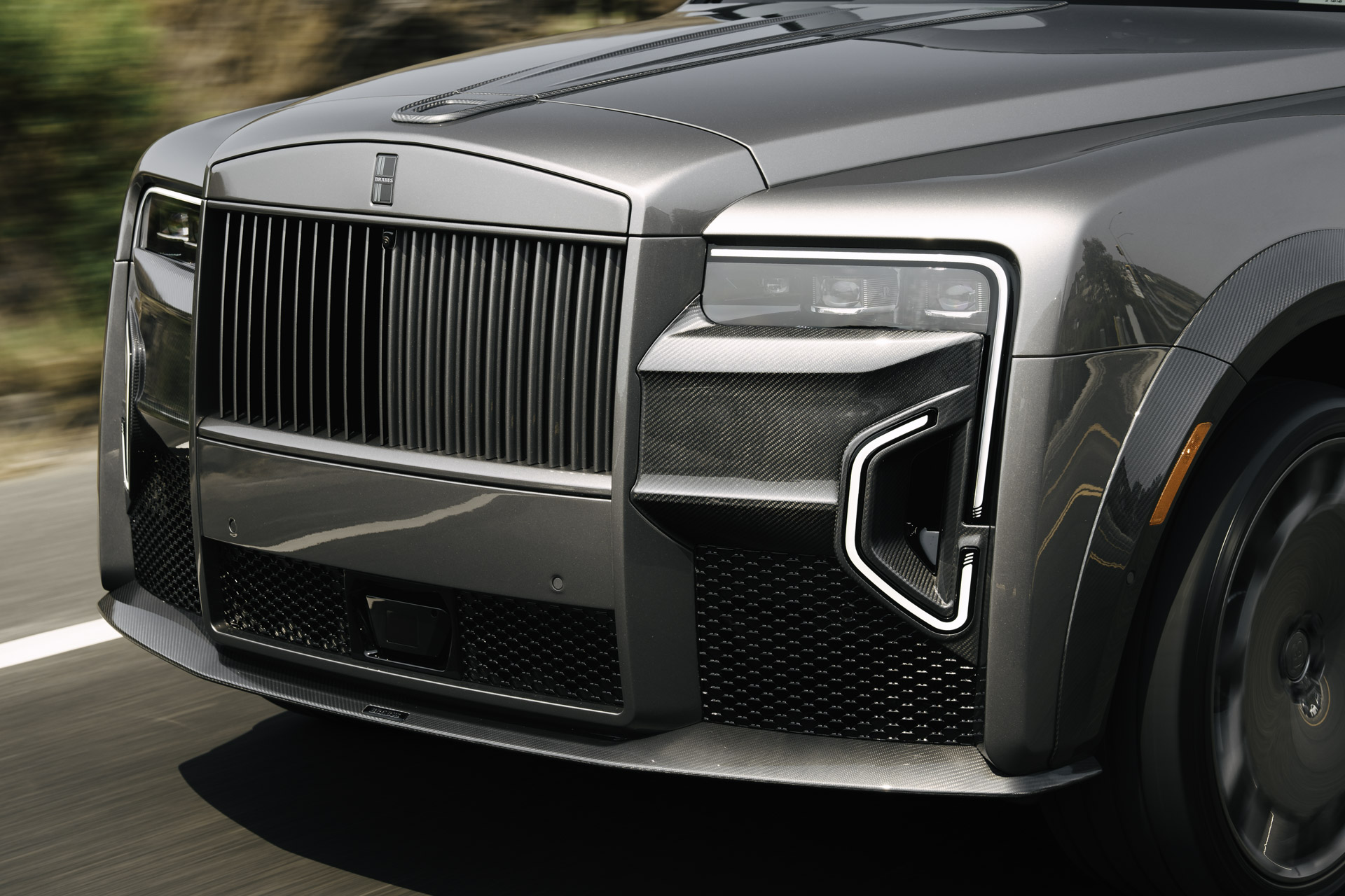 The newly developed BRABUS WIDESTAR widebody concept for the Rolls-Royce Cullinan Series II redefines the supercar’s presence with an undeniable BRABUS identity. Every component is produced from high-gloss exposed-structure carbon fiber, perfectly matched to the vehicle’s bespoke “Cascade Gray” paint finish for a look that radiates exclusivity from every angle.