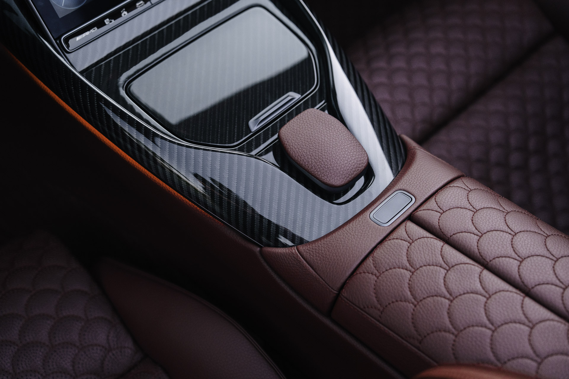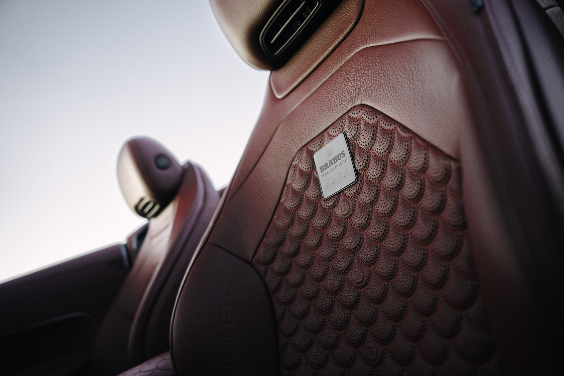 The perfect execution of all leatherwork is especially evident in the precise quilting in the BRABUS “Shell” design on the seat surfaces, the armrests of the door and side panels, the footwell trim and the leather floor mats. The seat surfaces also feature multiple embossed renditions of the signature BRABUS “Double-B” emblem.