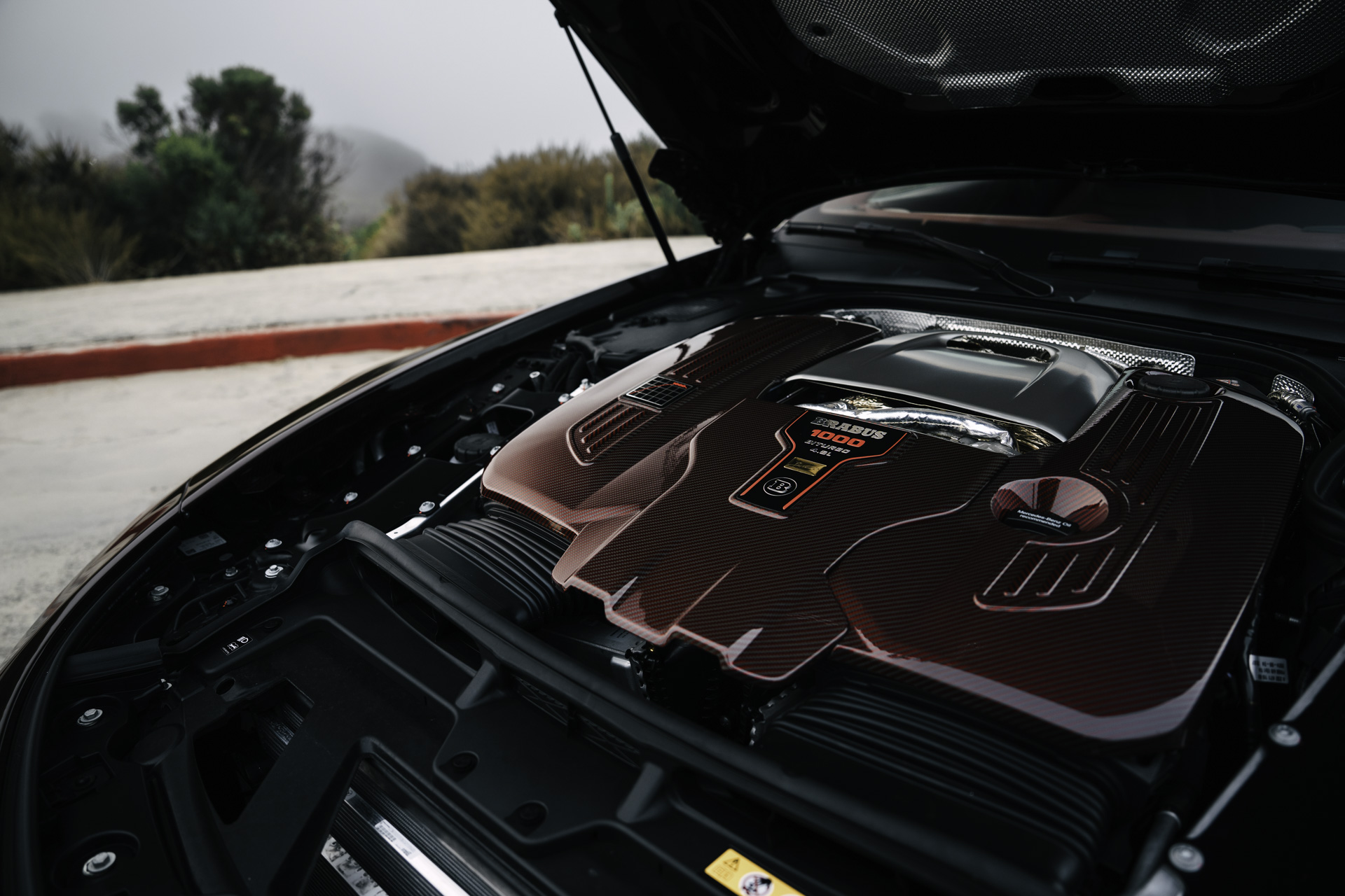 In keeping with our long-standing philosophy of achieving high peak power and immense torque through increased displacement, the BRABUS ROCKET 1000 4.5-liter twin-turbo V8 engine was developed. This unit delivers an output of 585 kW / 796 hp and a maximum torque of 1,250 Nm (922 lb-ft), which is electronically limited to 1,050 Nm (774 lb-ft) in the vehicle.