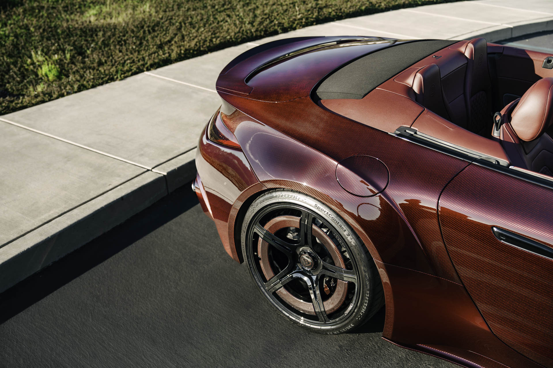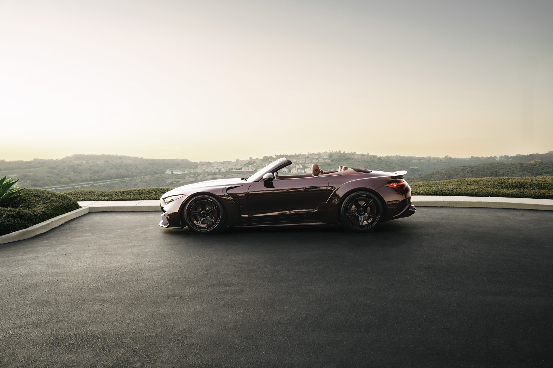 From the wide front wheel arches, the side sills channel airflow toward the BRABUS ROCKET rear quarter panels, which give the new open-top BRABUS supercar its imposing width of 198.5 centimeters (78.1 in.) at the rear axle.