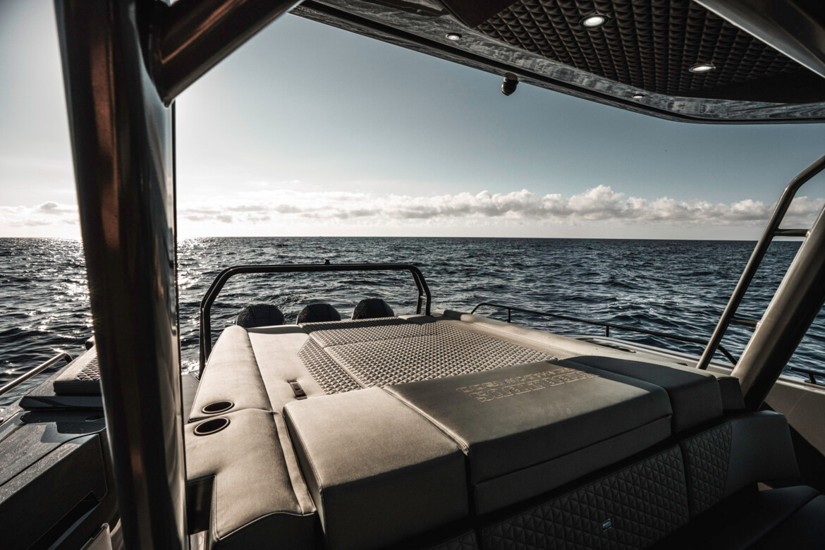 Created for true adventurers, this Cross Top model provides a connection to the elements unlike any other, while ensuring high-class comfort with its sheltered helm area. The weather-protected cockpit keeps the excitement of open boating alive in all conditions, allowing you to enjoy high-speed thrills without compromise. The dual electric sunroof above the helm adds an extra touch of convenience and functionality. Every adventure on the BRABUS Shadow 1500 Cross Top offers a perfect mix of high-performance thrills, protection and luxurious comfort.