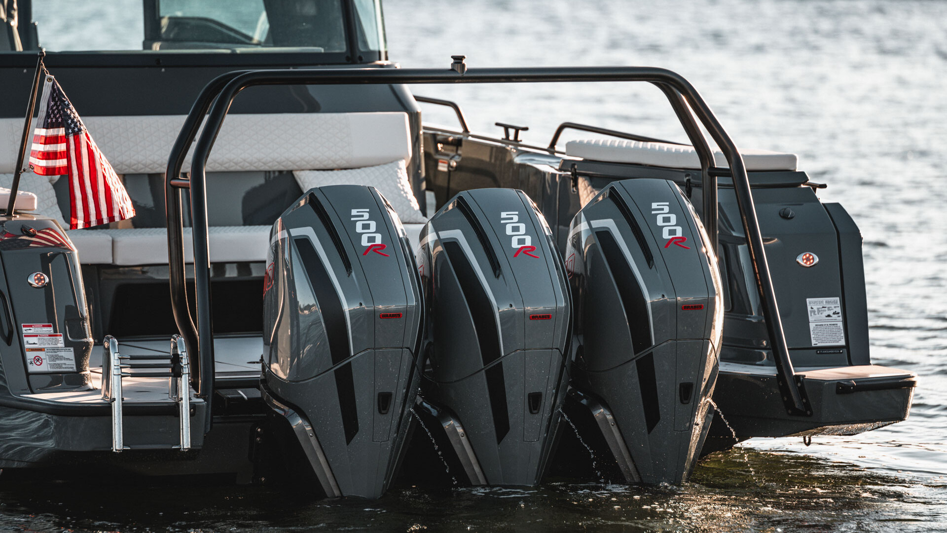 At the heart of the new BRABUS SHADOW 1500 XC CROSS CABIN are three supercharged Mercury Racing V8 engines, producing a combined output of 1,115 kw / 1,500 hp. This powertrain makes the Shadow 1500 one of the most agile high-performance dayboats in its class — boasting uncompromising acceleration and handling precision that transforms every voyage into a thrilling, visceral adventure. Effortlessly cruising at 40 knots and reaching top speeds of up to 62 knots, it delivers performance unparalleled in its class, ensuring thrilling adventures on the open water.