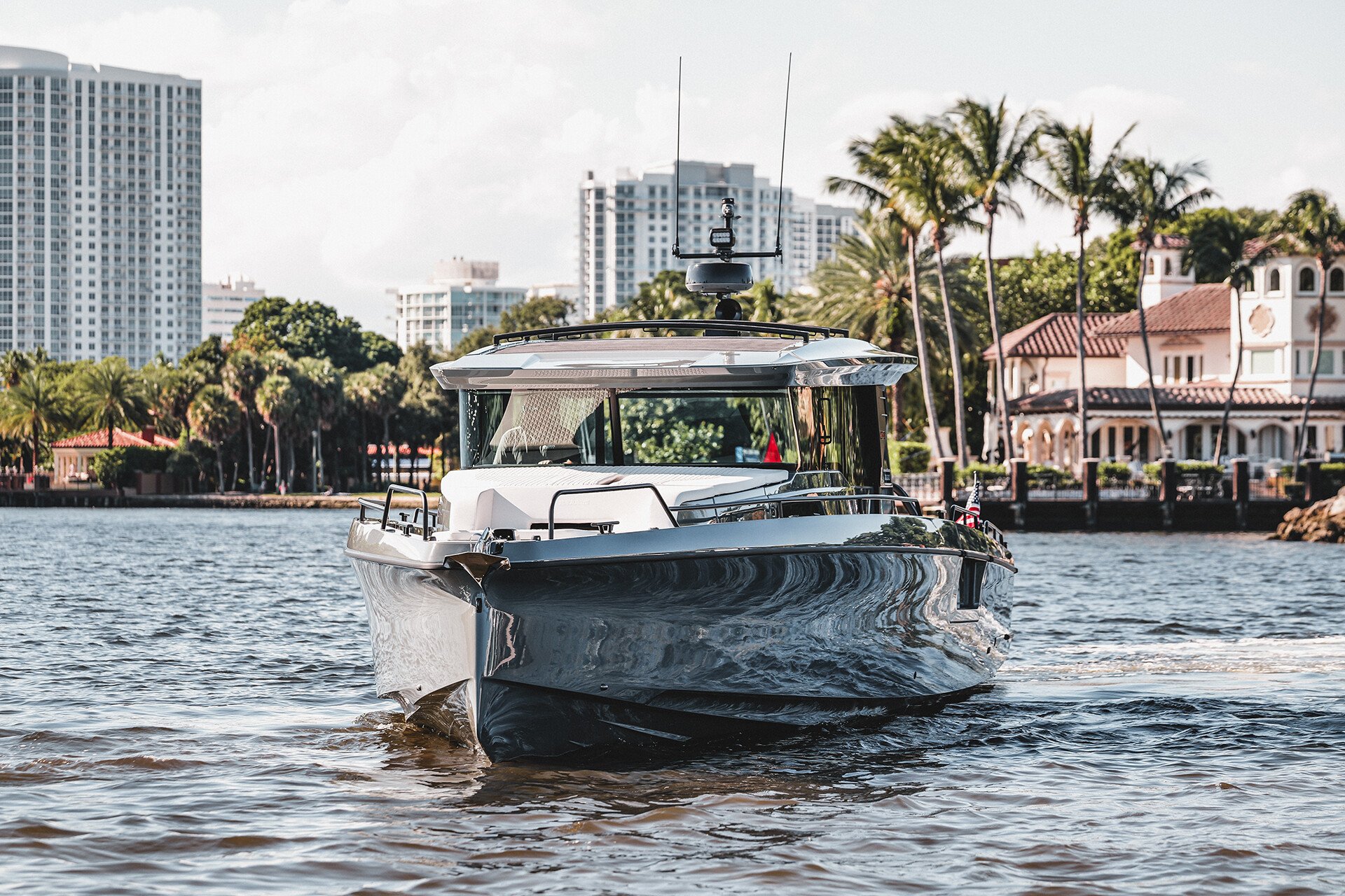 Blending power, innovation and style: the BRABUS SHADOW 1500 transforms every moment on the water into an unforgettable journey with its BRABUS typical aesthetic, thrilling performance and an undeniably luxurious ambience. With just a single touch, premium levels of onboard usability merge with unparalleled versatility. Seamlessly see the boat transform from an enclosed all-weather cabin to a fully open boat, perfected to deliver premium day and overnight boating experiences with nothing less than the highest level of BRABUS Masterpiece luxury and attention to detail.