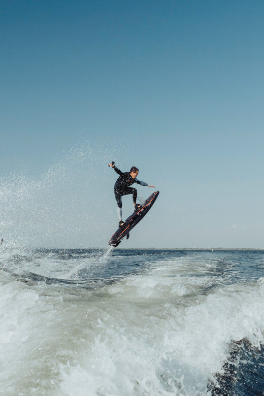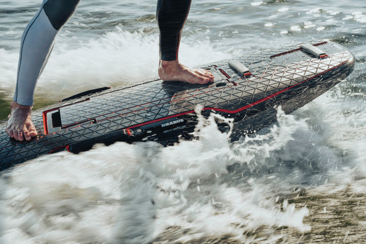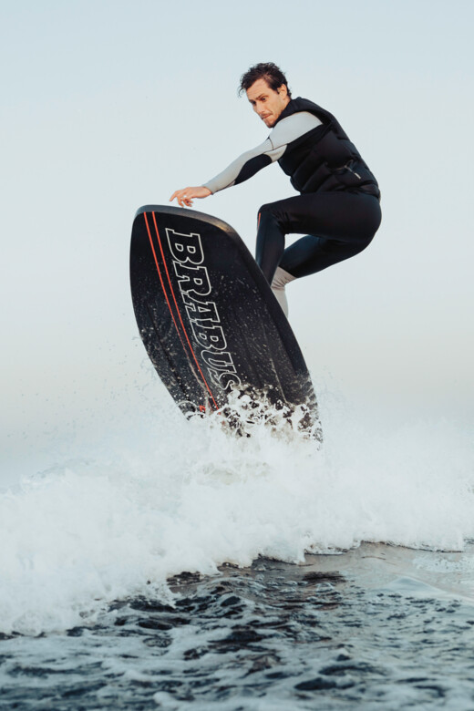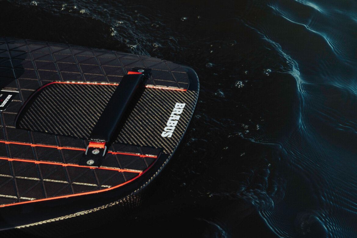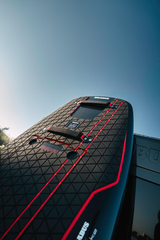 Second-generation Awake carbon fiber fins provide razor-sharp drive at high speeds while offering added stability for smooth, controlled maneuvers. These are complemented by a custom-made, BRABUS-style soft deck pad. The reduced W-shape hull design ensures the perfect balance of stability and dynamic handling - whether carving at high speed or gliding effortlessly along the shore.