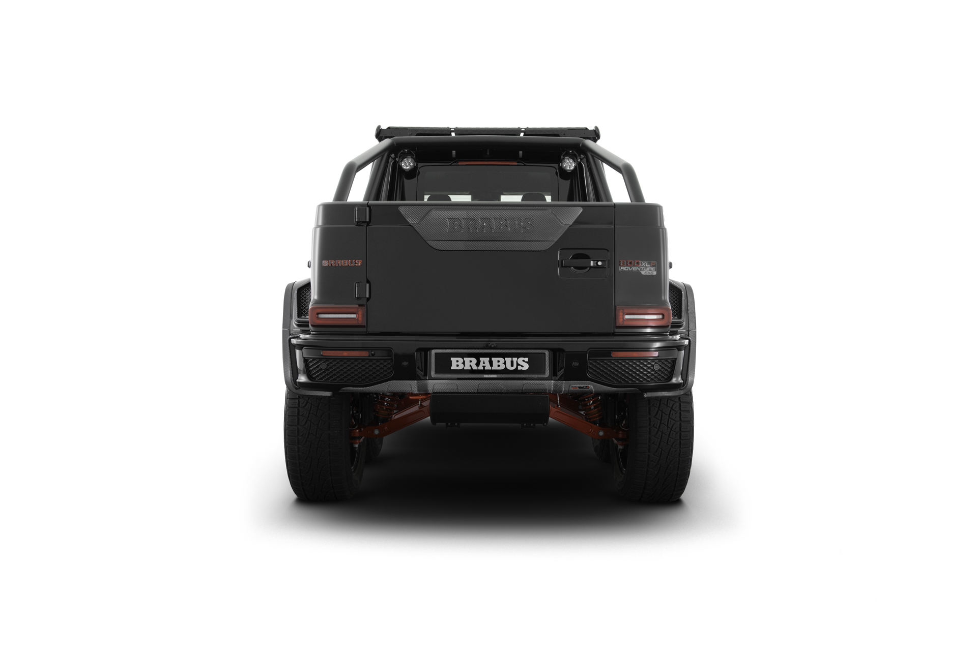 Developed in close collaboration with suspension specialist KW, the titanium-coated aluminum BRABUS special suspension is likewise tailor-made for the unique six-wheel architecture. All six struts are meticulously calibrated for the vehicle’s weight distribution and elevated stance, while adaptive damping—adjustable directly from the cockpit—allows the driver to fine-tune the ride for any terrain or driving style.