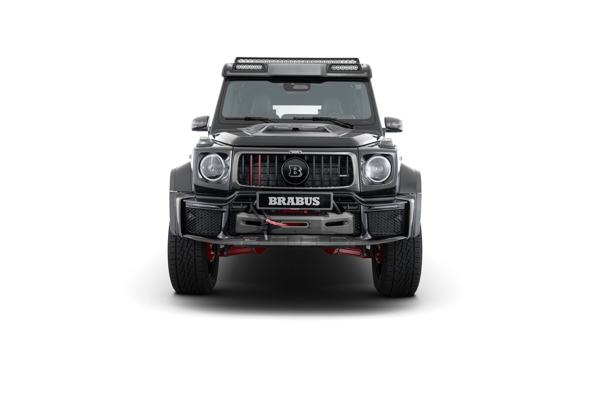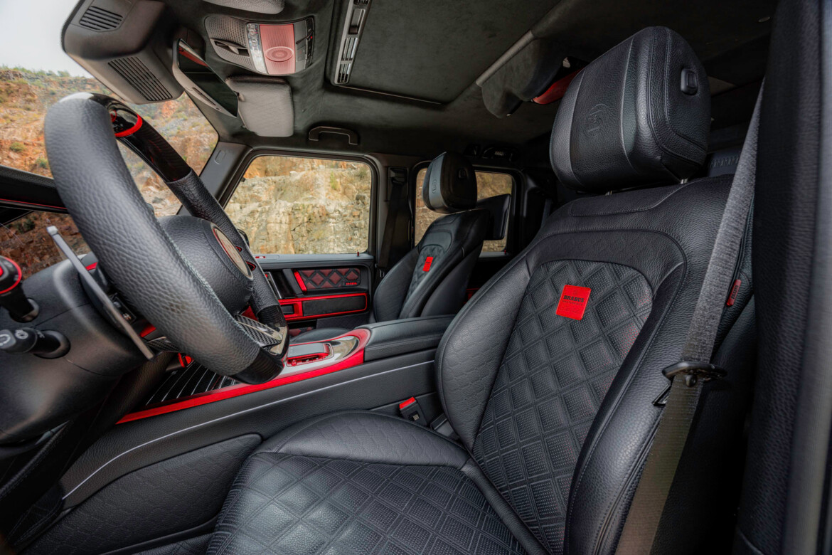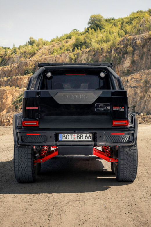 Every component—from the wheel hubs to all control arms, the integral front suspension support and the axle housings of the twin rear portal axles—is precision-milled from high-strength billet aluminum. Each piece is finished in a striking BRABUS red to visually complement the reinforced frame and underscore the XLP’s 1-Second-Wow DNA.