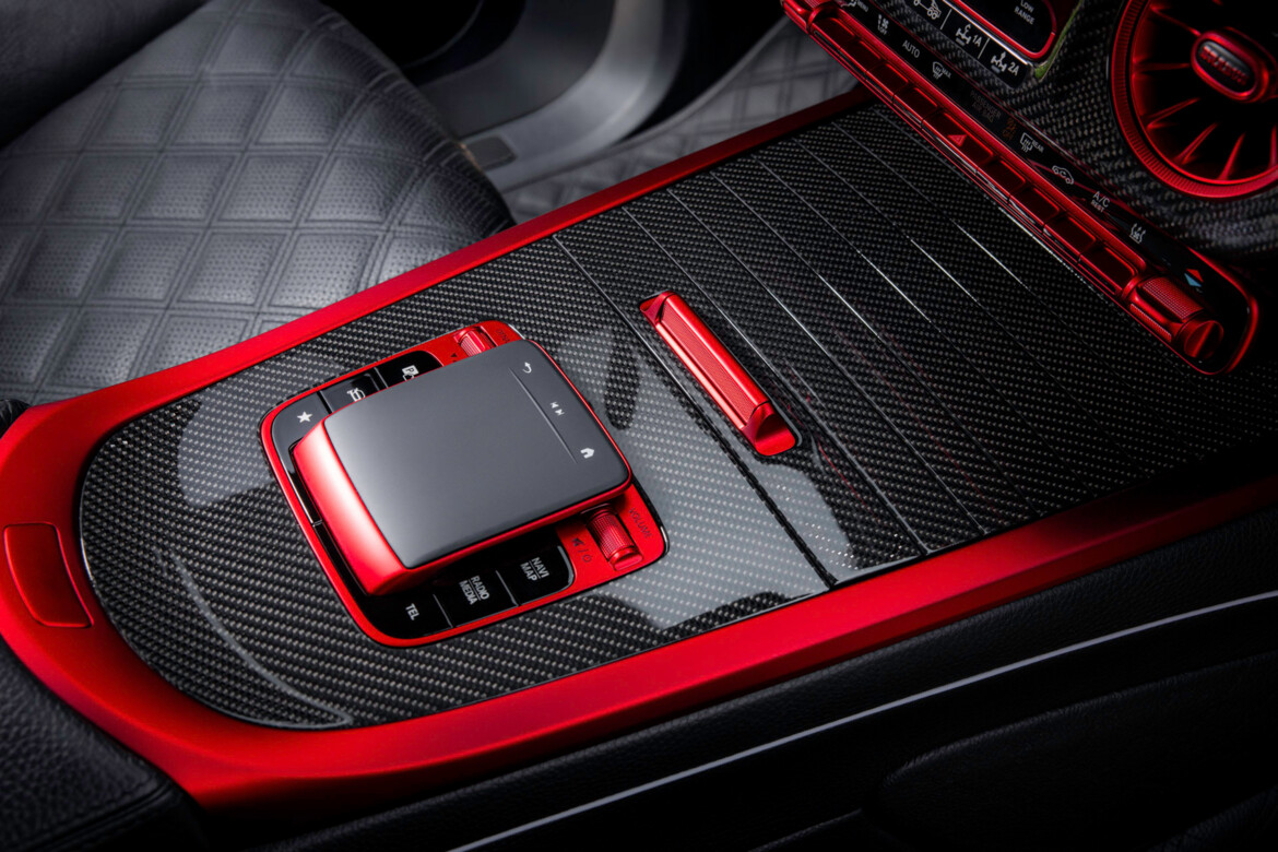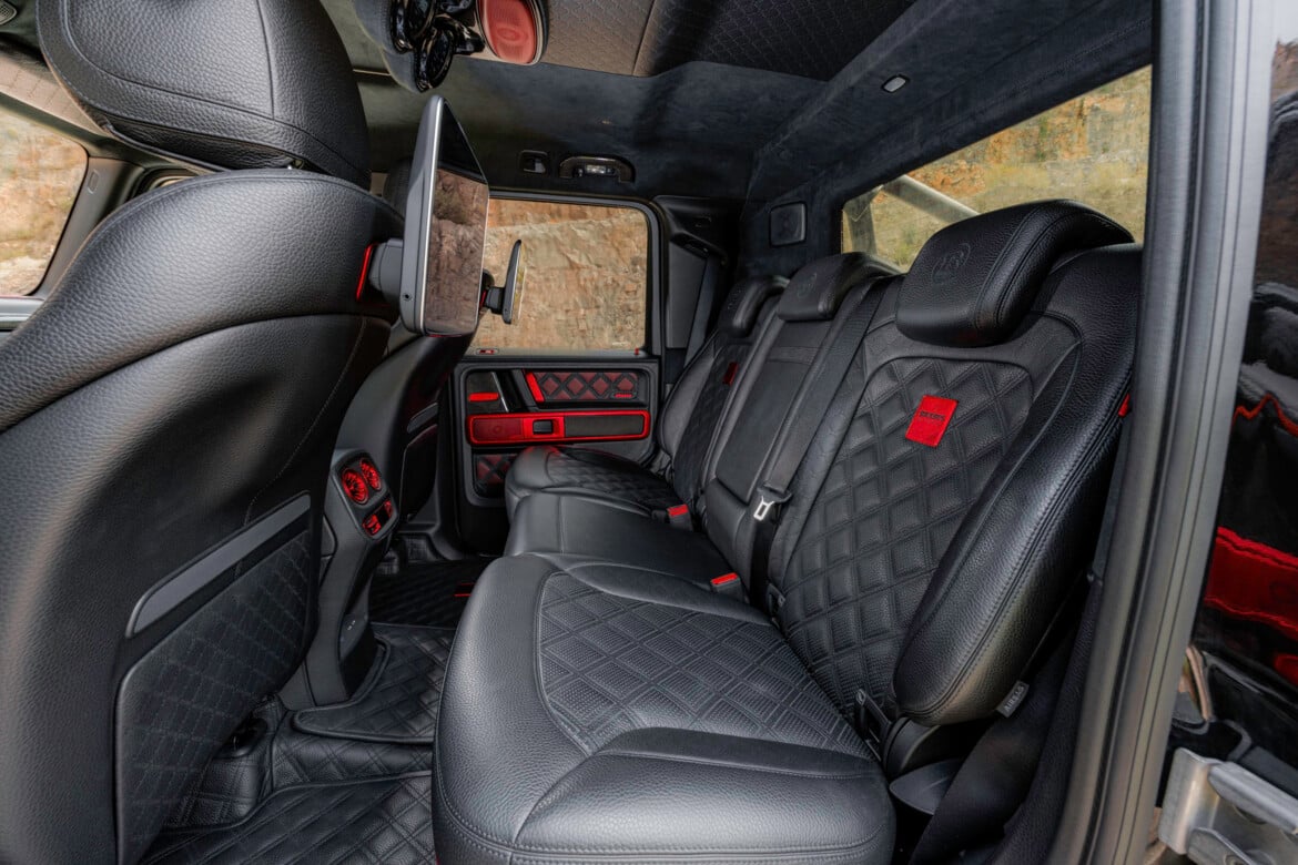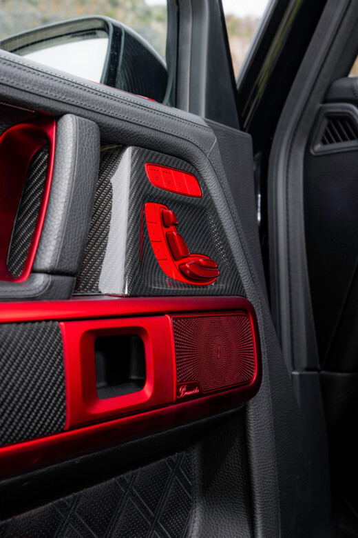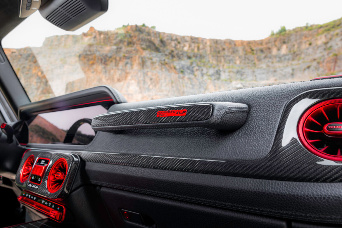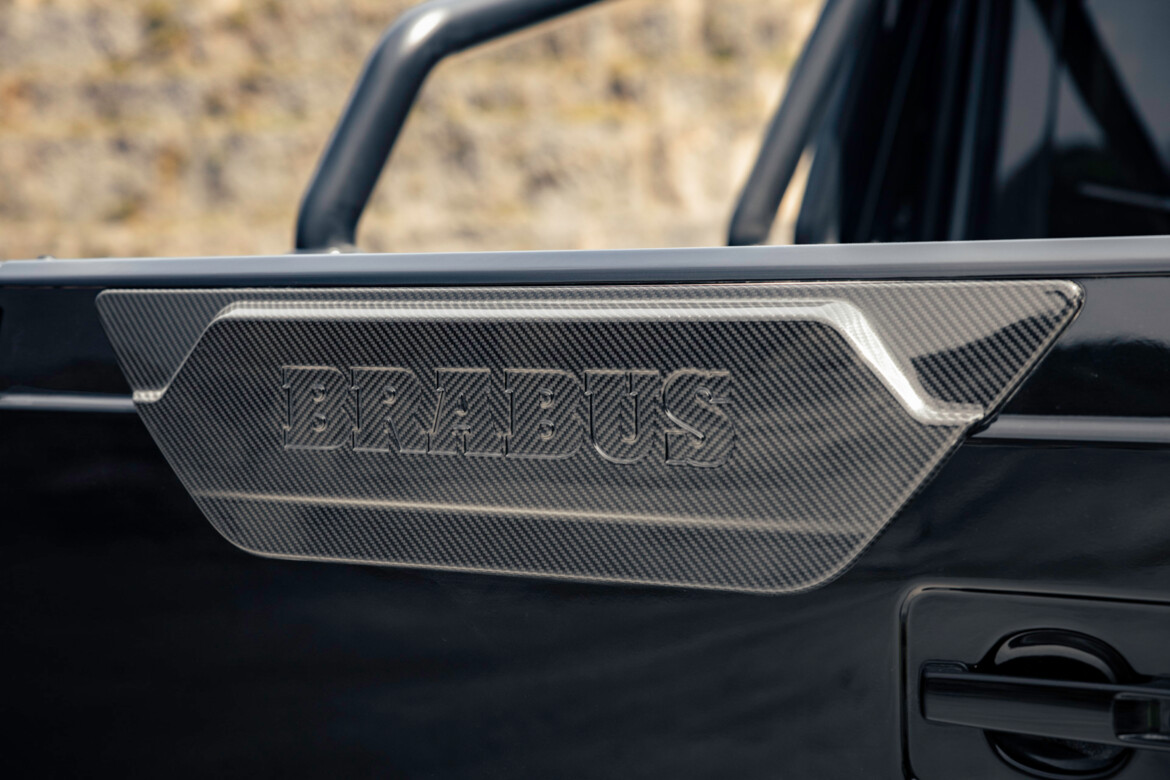 A new rear wall with a heated window, positioned directly behind the rear seats, offers an unobstructed view into the bespoke XLP cargo bed—and the striking BRABUS frame finished in red. The cargo bed itself was made from high-grade pre-preg carbon fiber with integrated, lockable storage compartments.
