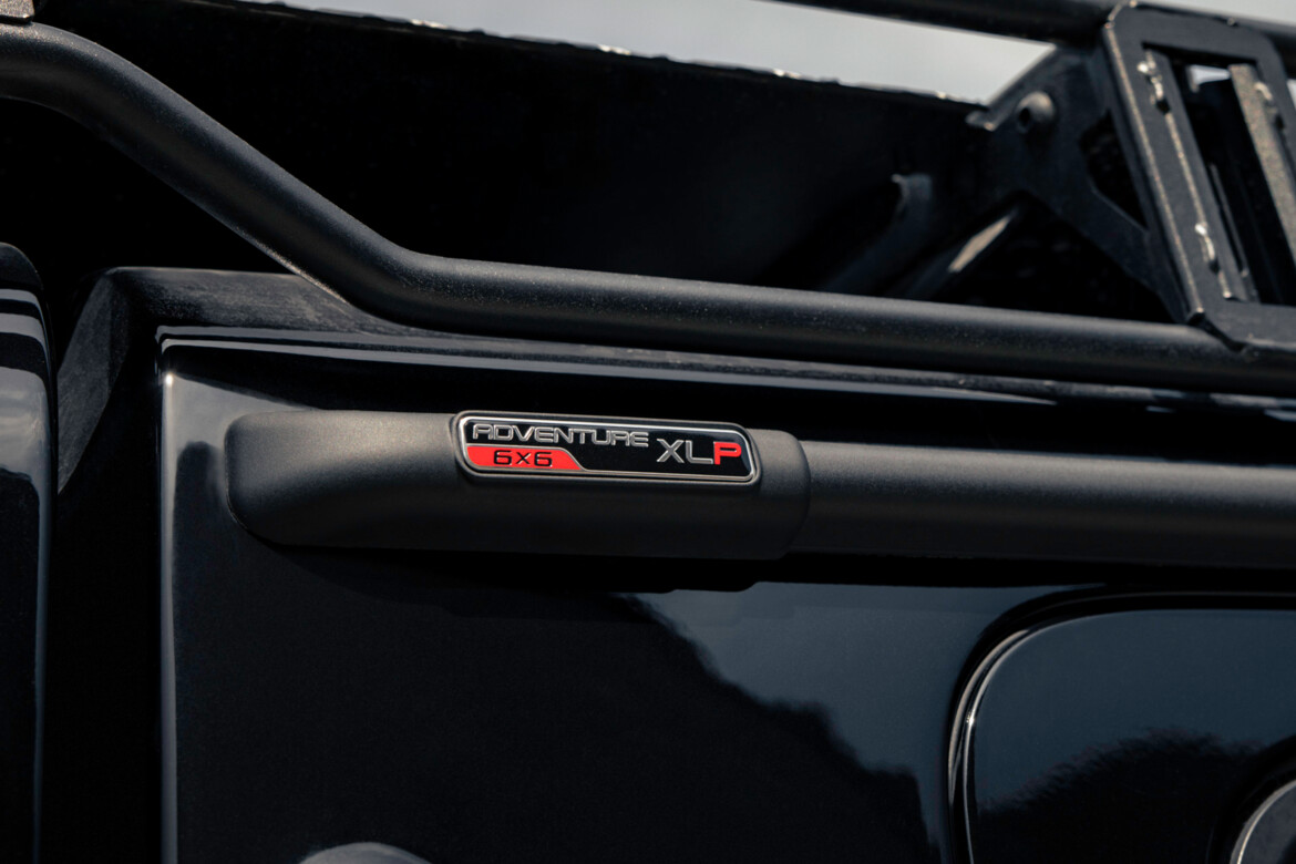In the rear, passengers are catered to with auxiliary gauges set into the headliner, keeping them informed of time and speed — a reminder that in the XLP 6x6, every seat is the best seat in the house.