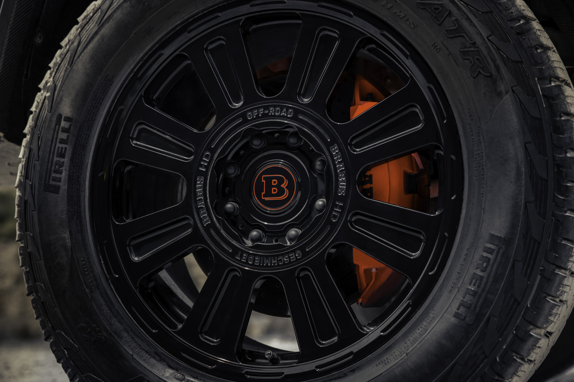 The BRABUS XLP 800 6x6 ADVENTURE is equipped with BRABUS Monoblock HD forged wheels, developed exclusively for the heavy-duty portal axle design. Measuring 9.5J x 22 and featuring a robust eight-bolt pattern, these wheels are engineered for extreme strength and load capacity. Paired with massive 325/55 R 22 all-terrain tires, they fill the WIDESTAR exposed-structure carbon fenders to perfection—delivering maximum traction no matter where your adventure may take you.