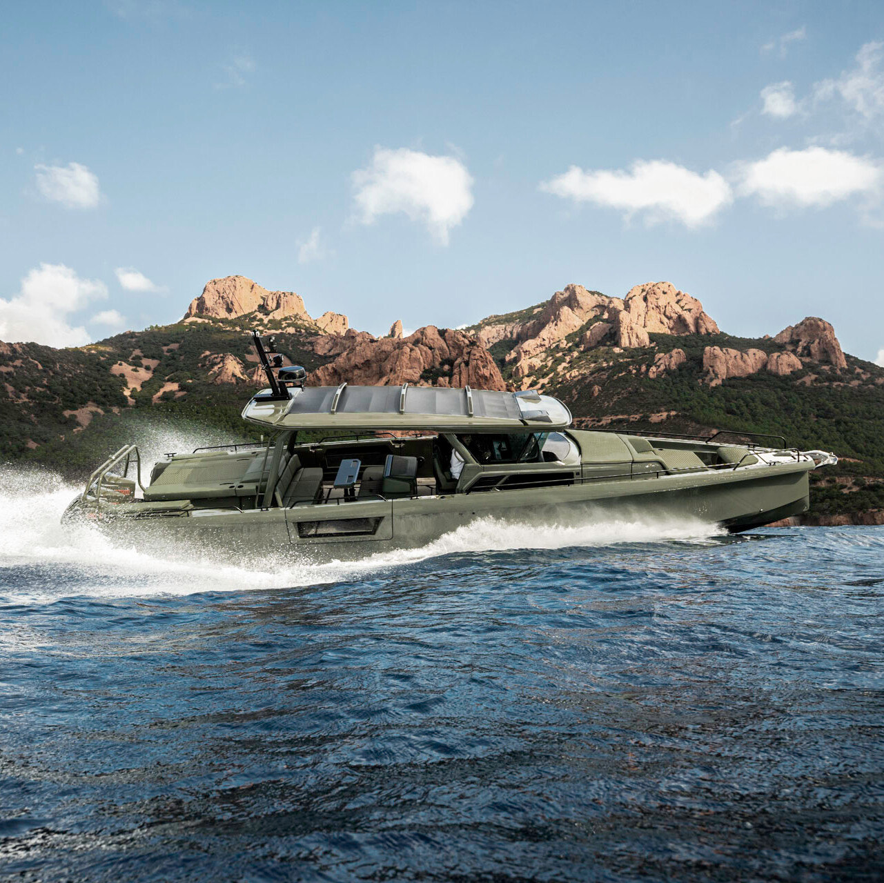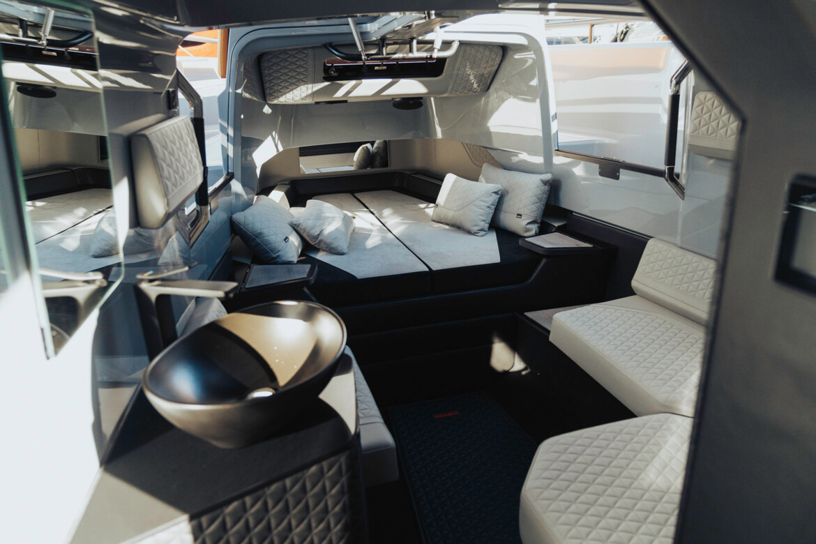 A particular highlight among the models exhibited by BRABUS Marine is the brand-new BRABUS Shadow 1500 Cross Top Stealth Green Signature Edition, the first BRABUS superboat with 1500 hp, combining design, adventure, and luxury. The collection is complemented by the BRABUS SHADOW 1000 SUN-TOP PHANTOM GRAY SIGNATURE EDITION.
