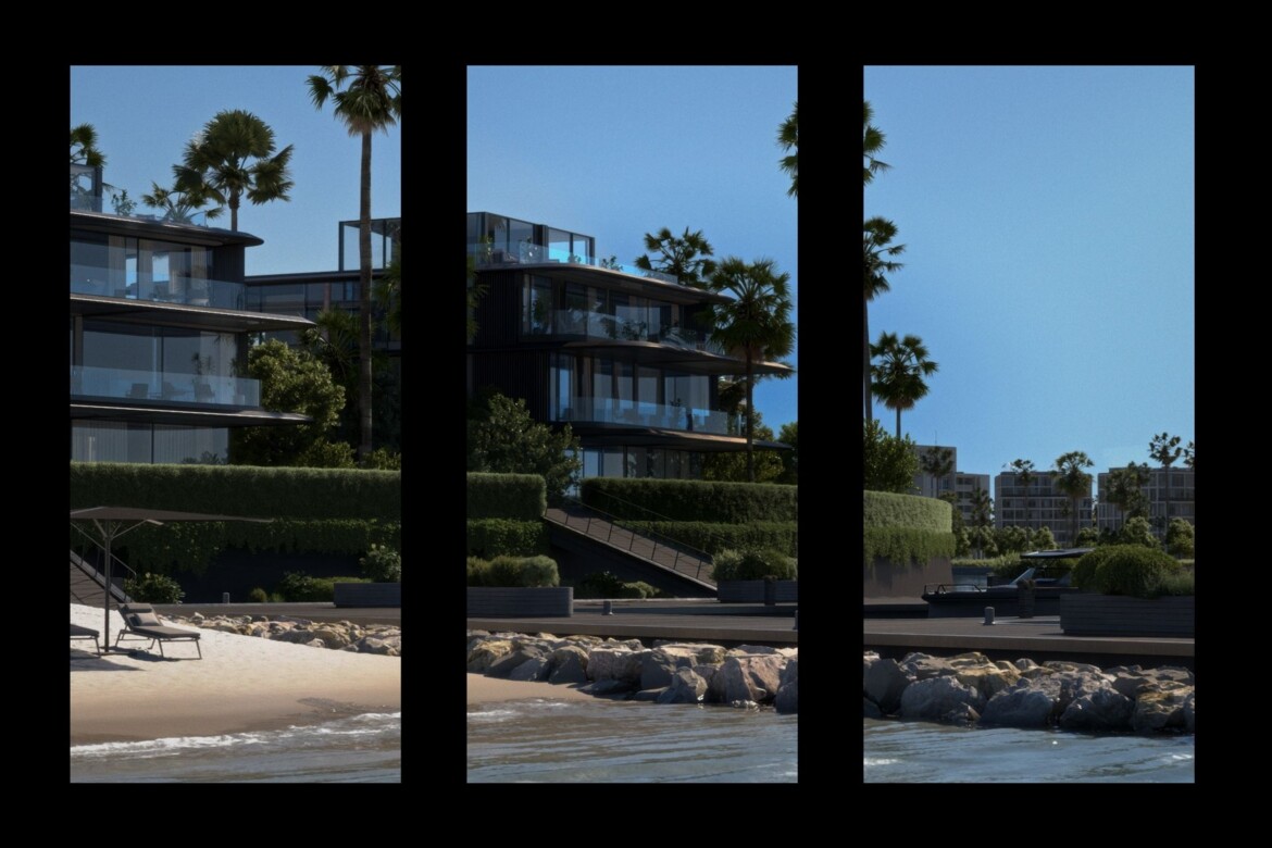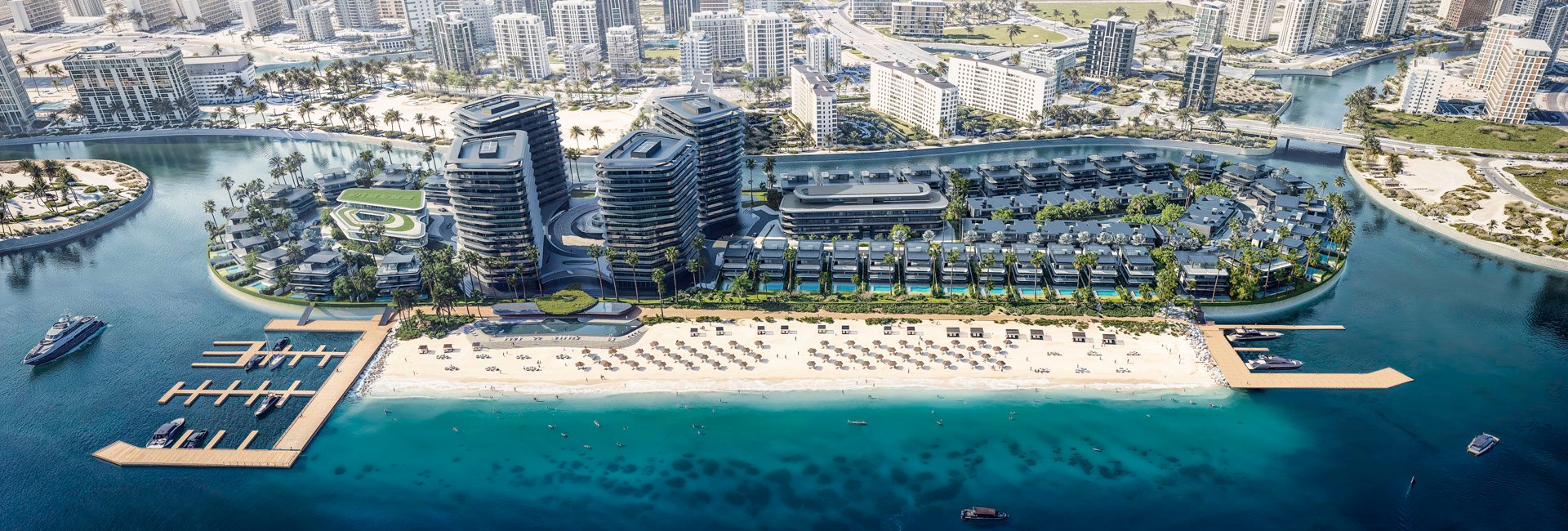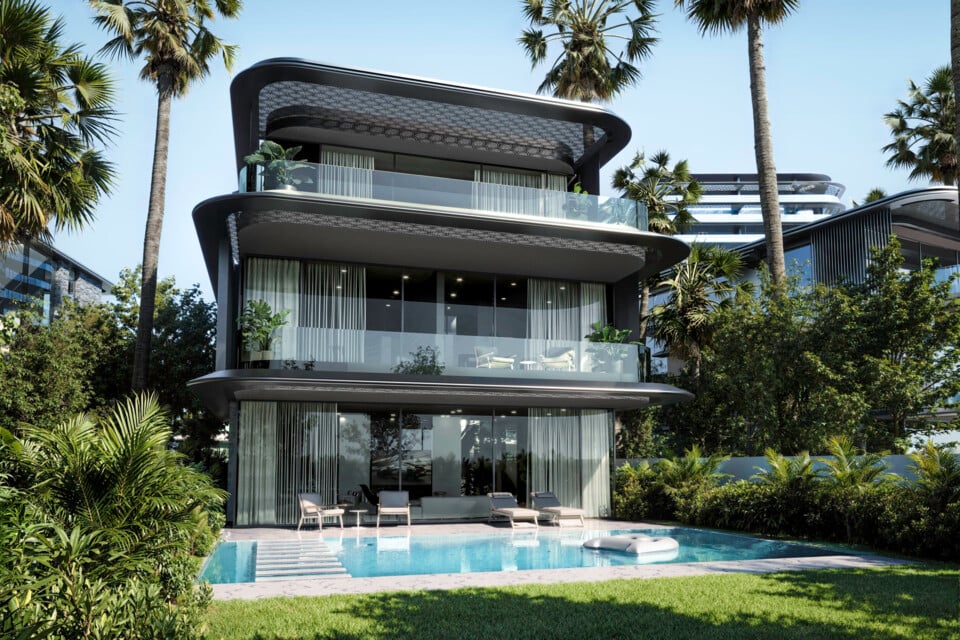 Expansive living spaces open onto private pools, balconies and terraces, with en-suite bedrooms, designer kitchens and fully tiled bathrooms blending elegance with functionality. Double-glazed windows frame sweeping views while ensuring comfort and privacy, while private green backyards and covered parking complete the sense of a self-contained sanctuary. Beyond the home itself, residents enjoy direct access to a private marina for yachts and boats, a private beach reserved exclusively for BRABUS ISLAND, a grand pavilion with curated retail, landscaped shaded seating areas, a gymnasium and large swimming pools.