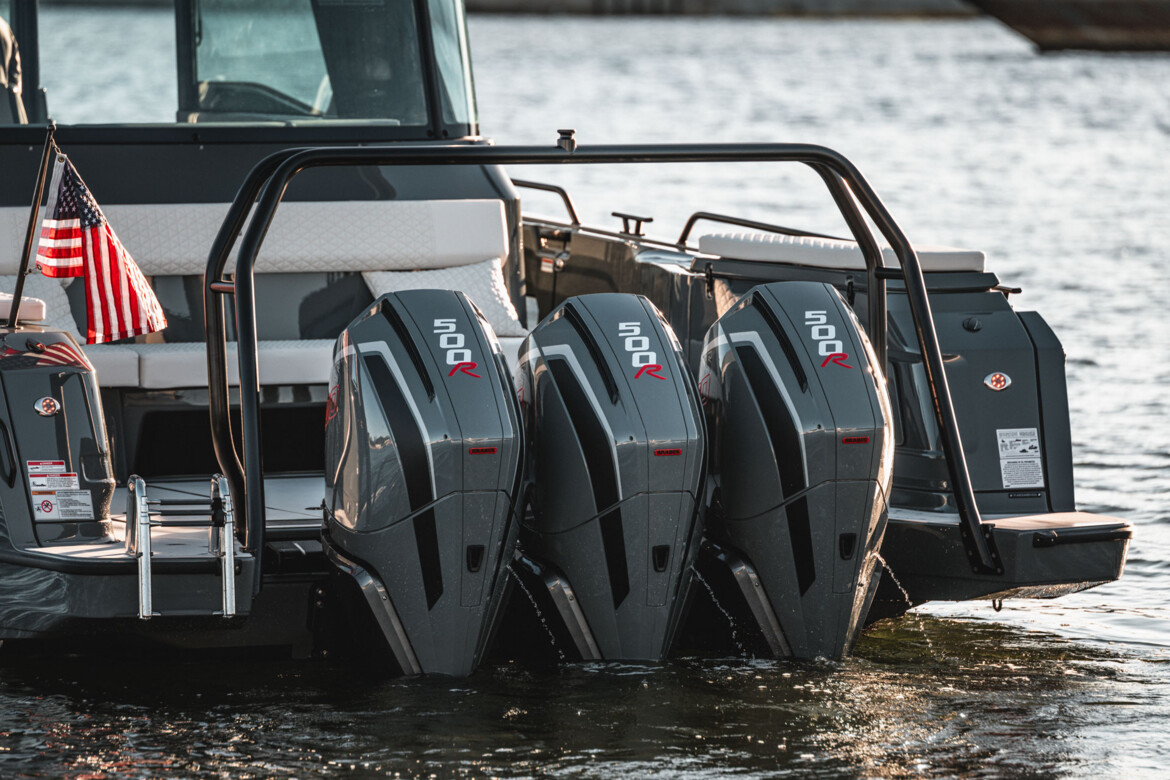 At the heart of the new SHADOW 1500 are three supercharged Mercury Racing V8 engines, producing a combined output of 1,115 kw / 1,500 hp. This powertrain makes the SHADOW 1500 one of the most agile high-performance dayboats in its class — boasting uncompromising acceleration and handling precision that transforms every voyage into a thrilling, visceral adventure. Exclusive features, including a premium audio system and an extended navigation package, further enhance the onboard experience. Brand-typical design elements set unmistakable accents across both the signature-style exterior and the extravagant, customizable Masterpiece interior.